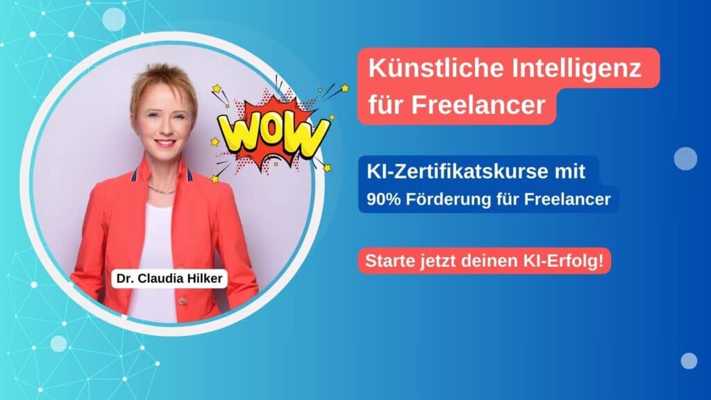 Bring dein freiberufliches Business mit KI auf das nächste Level. Erfahre mehr im Webinar: KI-Kurse mit 90 Prozent staatlicher Förderung für Freiberufler .
